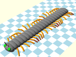 Animals with many legs typically move them in metachronal rhythm, which gives the appearance of waves of motion travelling forward or backward along their rows of legs. Millipedes, caterpillars, and some small centipedes move with the leg waves travelling forward as they walk, while larger centipedes move with the leg waves travelling backward.