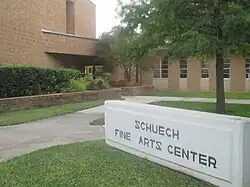 Schuech Fine Arts Center is a multipurpose facility with a 200-seat theater, recital hall, band hall, music studios, art labs, and a gallery.