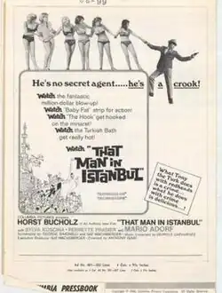That Man in Istanbul (Spanish: Estambul 65, Italian: Colpo grosso a Galata Bridge, French: L'Homme d'Istamboul) is a 1965 English-language European international co-production adventure film directed by Antonio Isasi-Isasmendi and starring Horst Buchholz.[2] It was released in the United States by Columbia Pictures. That Man in Istanbul is a eurospy comedy film. Its English-language title is likely a reference to the 1964 eurospy comedy film That Man from Rio.