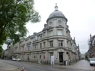 The building containing the shopping centre dates to 1901 and was built in the Renaissance style. The building was designed by John Alexander Ogg Allan, the official architect to the Aberdeen School Board.[8] The building is Category B listed.[9] W A Brogden in Aberdeen: An Illustrated Guide describes the building as "full of imperial vigour".[10]