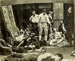 A month after the film's release, the "Western Correspondent" for Moving Picture News reported from Arkansas that his wife, who reviewed the picture, thought it "was about the best battle scene and military reel she has looked at in many days", adding that "Because it was historical in character she raved about it."[9] In Chicago, film reviewer Charles A. Young, predicted that The Battle of Trafalgar would have strong appeal in foreign markets, especially in Canada. "The sentiment of the Canadian public", he observed, "is that too much Yankee heroism at present is being exhibited in the animated picture theaters in Canada", noting that "Edison's 'The Battle of Trafalgar,' etc., will be of great interest and value to the Dominion of Canada and England."[10] Young's comment proved to be correct, for by October and November 1911, foreign newspapers were already reporting positive responses to the screen drama's presentation in select theaters in England, Ireland, Wales, and France; and by February 1912 the "spectacular picture" was being screened as far away from Edison Studios as Bombay (now Mumbai), India.[11][12] It is noteworthy that in marketing The Battle of Trafalgar in France, French distributors changed the film's title to La Mort de l'Amiral Nelson ("The Death of Admiral Nelson").[13]