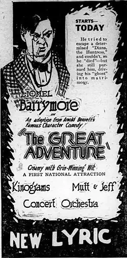 - ^ "The Great Adventure: Barrymore Out of his Forte in Comedy Role". Film Daily. 15 (28). New York City: Wyd's Films and Film Folks, Inc.: 5 January 30, 1921. Retrieved March 7, 2014.