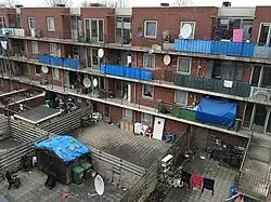 More than 90% of the registered residents are of non-Western origin - notably Turkish, Moroccan and Surinamese. Of the housing stock approximately 25% is privately owned, these homes are often rented. The remaining houses are owned by the housing association HaagWonen. Especially in the eastern part of the Schilderswijk (Orange Square and around the station Holland Spoor) some problems have been addressed, so the renewed Orange Square, have built larger homes including houses for sale, for example the new Mirador project, and the prostitution in the Dijksestraat were removed. This street is changed in the Wolterbeek Street.