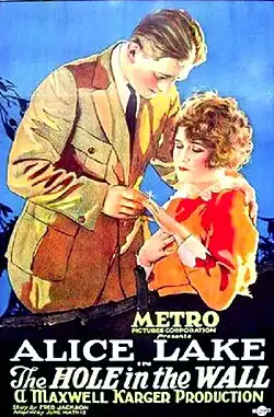 The Hole in the Wall is a 1921 American silent drama film produced and distributed by Metro Pictures and directed and co-produced by Maxwell Karger. The film starred Alice Lake and is based on a Broadway play, The Hole in the Wall by Fred Jackson.[1][2][3]
