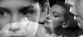 An unreliable narrator was originally intended to feature in the narrative and the film was to open with a funeral scene.[21] There are stills of the scene that circulated at the time, but Clayton ultimately elected to open the film with darkness, a song sung by a little girl, and the image of Kerr's hands that are clasped in prayer, with her rosary between her fingers, as she murmurs and sobs.[22] Gradually Kerr's face is highlighted. According to film scholar Frayling, the opening scene creates a sense of intimacy and, perhaps, trust that the governess should be trusted, but the use of darkness surrounding her suggests that it is possible that the story that follows could be nothing more than in her own mind – isolated and creating its own supernatural world.[23]