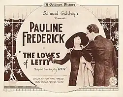 The Loves of Letty is a 1919 American silent drama film produced and distributed by Samuel Goldwyn and directed by Frank Lloyd. Based on the play Letty by Arthur Wing Pinero, the film features Pauline Frederick in the title role.[1] It was originally considered a lost film, but a print with some deterioration has reportedly been found in a European collection.[2]