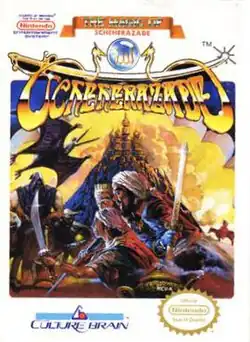 The Magic of Scheherazade[a] is an action-adventure/role-playing video game (RPG) developed and released by Culture Brain for the Nintendo Entertainment System (NES). The game was released in 1987 in Japan and 1990 in North America. The plot is based on Middle Eastern folktales from One Thousand and One Nights. It involves an amnesic hero traveling through time in an attempt to rescue the princess Scheherazade from the evil wizard Sabaron, who has summoned a horde of demons to bring chaos to the once peaceful land of Arabia. The Magic of Scheherazade is divided into chapters and incorporates elements of both action-adventure and RPG gameplay styles. In each chapter, the player character can freely explore an overworld in a top-down perspective. The player engages hostile enemies with various weapons and spells through both real-time solo action on the overhead map and random, turn-based battles fought alongside befriended allies.