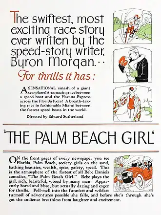- ^ "New Pictures: The Palm Beach Girl". Exhibitors Herald. 25 (07). Chicago, Illinois: Exhibitors Herald Company: 63. May 1, 1926. Retrieved April 3, 2024.