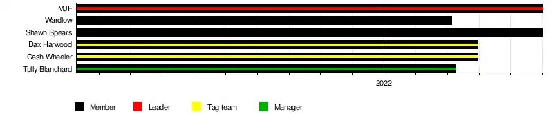 In March 2022, Wardlow would leave the group after betraying MJF, Blanchard left after being fired by FTR, and FTR themselves would quietly end their association with the team. After quietly disbanding in June 2022, the group re-united briefly in October without Friedman and Blanchard.