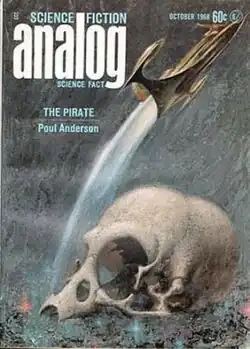 "The Pirate" is a science fiction short story by American writer Poul Anderson that first appeared in the October 1968 issue of Analog. "The Pirate" was a prequel to the earlier Psychotechnic League novel Star Ways (later retitled The Peregrine), and was the last story in the Psychotechnic series to be published. The story was included in the 1975 collection Homeward and Beyond and the 1982 collection Starship, and the timeline from the latter collection places the story in the year 3115.[1]