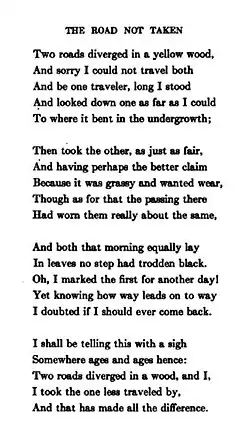 - ^ Robinson, Katherine. "Poem Guide: Robert Frost: "The Road Not Taken"". Poetry Foundation. Retrieved 14 December 2020.