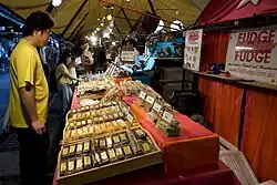 The Rocks was established shortly after the colony's formation in 1788. It was known as Tallawoladah by the Cadigal people.[6] The original buildings were first traditional vernacular houses, of wattle and daub, with thatched roofs, and later of local sandstone, from which the area derives its name.[6] From the earliest history of the settlement, the area had a reputation as a slum and the arriving convicts' side of town, often frequented by visiting sailors and prostitutes.[6] After November 1790, many of the inhabitants were also Aboriginal. In 1823, the district had a population of about 1,200. During the late nineteenth century, the area was dominated by a gang known as the Rocks Push. It maintained this rough reputation until approximately the 1870s.[7][8]