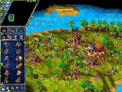 The Settlers III is a real-time strategy game with city-building elements,[4][5][6] controlled via a point and click interface, in which the primary goal on most maps is to build a settlement with a functioning economy, producing sufficient military units so as to conquer rival territories, ultimately gaining control of either the entire map or a certain predetermined section of it.[7] To achieve this end, the player must engage in economic micromanagement, construct buildings, and generate resources.[8]