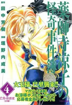 The manga started in 2004 in Kodansha's seinen manga magazine Magazine Z. Its chapters were collected into eleven tankōbon volumes, released from July 23, 2004 to January 23, 2009.[29][30] After Magazine Z ceased its publication, the series was transferred to Monthly Afternoon.[31][32][33] The series began in the May 2009 issue of Monthly Afternoon, published on March 25, 2009,[33] and it was renamed Yakushiji Ryōko no Kaiki Jikenbo: Kiri no Hōmonsha (薬師寺涼子の怪奇事件簿 霧の訪問者). The series finished in the January 2010 issue of Monthly Afternoon, released on November 25, 2009.[34] It was compiled into two volumes, published on September 23, 2009 and January 22, 2010.[35][36] A third series, titled Yakushiji Ryōko no Kaiki Jikenbo: Suiyobi ni Goyojin (薬師寺涼子の怪奇事件簿 水妖日にご用心), started in the March 2010 issue of Monthly Afternoon, published on January 25, 2010.[37] The series finished in the November 2010 issue of the magazine, published on September 25, 2010.[38] Two volumes released on June 23, 2010 and November 22, 2010.[39][40] A fourth series, titled Yakushiji Ryōko no Kaiki Jikenbo: Jyoō Heika no Maneki Neko (薬師寺涼子の怪奇事件簿 女王陛下の招き猫) was serialized from the October 2012 issue, published on August 25, 2012, and the January 2013 issue, published on November 24, 2012.[41][42] A compiled volume was released on January 23, 2013.[43] A fifth series, titled Yakushiji Ryōko no Kaiki Jikenbo: Makyo no Jyoō Heika (薬師寺涼子の怪奇事件簿 魔境の女王陛下) was serialized in Monthly Afternoon from the February 2013 issue, published on December 25, 2012, to the November 2013 issue, published on September 25, 2013.[44][45] Two volumes were published on May 23 and November 22, 2013.[46][47]