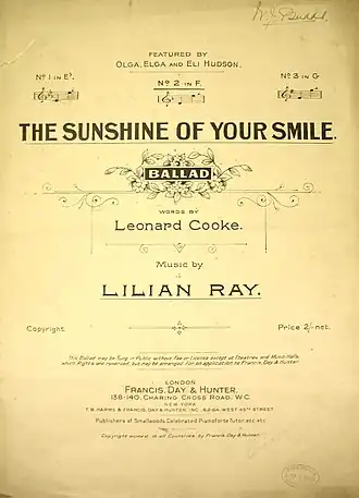 - ^ a b "The Sunshine of Your Smile", Sheet music, Francis, Day & Hunter, 1915.