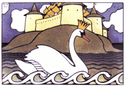After returning, Gvidon tells the swan about the beautiful princess and says that he wants to marry her. She again fulfills Gvidon's wish, because the princess with the star on her forehead is herself. The merchants once again come to Saltan, tell him about all the changes on the island and again pass on Gvidon's invitation. As a result, Saltan sets off on a journey to the island kingdom. Upon arrival, he recognizes the queen as his wife, and the young prince and princess as his son and daughter-in-law respectively. In his joy, he forgives his evil sisters-in-law and Babarikha, and he lets them go home. A merry feast is arranged, and everybody lives happily ever after.