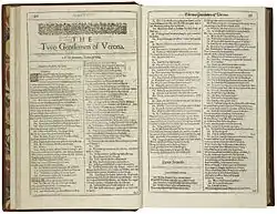 First page of The Two Gentlemen of Verona from the First Folio (1623)