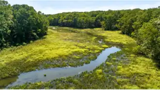 A creek runs through a tidal marsh in Mallows Bay Park in Charles County, Maryland, in the Chesapeake Bay drainage basin.