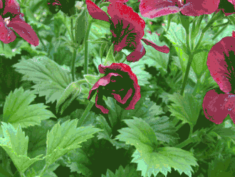 Blossoming geraniums; two hours are compressed into a few seconds.