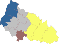 By the end of September 1991 in Zakarpattia Oblast has formed two opposing political camps.[43] One camp pro-Ukrainian has united around the National Movement of Ukraine also included URP, DemPU, Party of Greens, Shevchenko Association of Ukrainian Language, regional branches of Prosvita, Memorial and others.[43] The camp also supported by students of the Uzhhorod State University, several members of the Uzhhorod city council, Greek Catholic Eparchy of Mukachevo, and small faction of deputies in the regional council.[43] The pro-Ukrainian camp was seeking to reelect the regional council.[43] The other camp consisted of sympathizers of the regional nomenklatura officials (and formerly communist) who were supported by Association of Carpatho-Rusyns, later it was joined by KMKSZ (Association of Hungarian Culture of Zakarpattia).[43] The latter camp also was supported by the Zakarpattia eparchy of Russian Orthodox Church, selected members of the Greek Catholic Eparchy of Mukachevo as well as by the majority of the regional council.[43] The camp was aimed to prevent reelection of the regional council and obtain autonomous status for the region.[43]