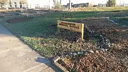 A wooden sign for the Garden was created by Jarek Steele, an active member of MTUG and co-owner of Left Bank Books. The front of the sign is inscribed with the words "Transgender Memorial Garden Est. 2015" and the phrase, "They tried to bury us. They didn't know we were seeds." The source of this phrase is the writings of the Macedonian poet Dinos Christianopoulos.[9][10] The sign is located at the northern edge of the Memorial facing onto Hunt Avenue.