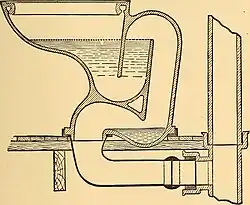 Where a volume of water may be rapidly discharged through the trap, a vertical vented pipe called a standpipe may be attached to the trap to prevent the disruption of the seal in other nearby traps.[1] The most common use of standpipes in houses is for clothes washing machines, which rapidly dispense a large volume of wastewater while draining the wash and rinse cycles.[2]