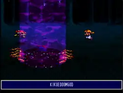 The game features a magic system where the player can create magic spells by entering words up to six katakana characters.[2] Whereas most console RPGs give the player access to a limited number of precreated spells, it allows the player nearly total creative freedom.[1] The player can enter various magic words (called kotodama (言霊,ことだま) in the original) into their grimoire. Every one will have some effect, although most are not useful. There is an underlying framework to the system, however, which is based on the gameworld's elements.