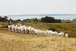 Trehøje is a Danish vista point with a view of the sea to the east, south and west, located in the Mols Bjerge National Park on the peninsula Djursland between Denmark and Sweden. Three large bronze-age barrows close to each other 127 meters above the sea, have given their name to the place, which contains a group of 22 barrows. "Trehøje" meaning three mounds, is one of four major vista points in the hills of Mols, each with a barrow on top. The others are Ellemandsbjerg, Stabelhøje and Agri Baunehøj.[1]