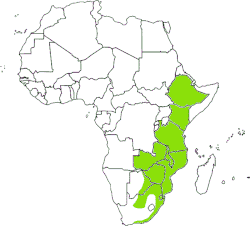 - Tuxentius melaena melaena — South Africa (from Eastern Cape and KwaZulu-Natal coast, inland to Gauteng, Mpumalanga, Limpopo and North West) to Zimbabwe, Mozambique, Malawi, Zambia, Tanzania, Kenya, Ethiopia