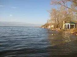 The history of Twin Lakes Beach as a recreational area began around 1911 when Meindl built a hunting lodge, as hunting was the primary activity of the beach at the time.[3] The lodge and others over time were used in the summer for fishing and holidays as well. About six or seven other medical doctors also used the area for hunting including Howden and Lambert. Over time Howden and Meindl acquired the land that comprises most of the present day beach from a local farmer with Howden acquiring over one mile of land in the Rural Municipality of Woodlands while Meindl acquired approximately 3 miles of land in the Rural Municipality of St. Laurent.[3] It was after this time that the land was subdivided and many people began to purchase lakefront properties in the area initially mainly for summer homes and cottages, but also for permanent residences later on. Meindl donated 580 feet of beach front land for the local Metis people of St. Laurent for recreational use, which later became Meindl Park (French: Parc Meindl), named in his honour.[4] Prior to the flooding of 2011, the highest recorded water level on Lake Manitoba was during the summer of 1955 when the water level gauge at nearby Delta Beach recorded 816.32 feet above sea level, although the readings were subject to wind setup due to the long fetch length of the lake to the north.[5] During this year some residents were forced to boat to their properties as the road was underwater.