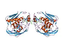- ^ Whittington DA, Rusche KM, Shin H, Fierke CA, Christianson DW (July 2003). "Crystal structure of LpxC, a zinc-dependent deacetylase essential for endotoxin biosynthesis". Proc. Natl. Acad. Sci. U.S.A. 100 (14): 8146–50. Bibcode:2003PNAS..100.8146W. doi:10.1073/pnas.1432990100. PMC 166197. PMID 12819349.