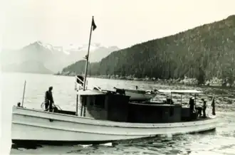 The U.S. Coast and Geodetic Survey commissioned the vessel as USC&GS Scandinavia and placed her in service as a survey launch.[3][4] Photographs of Scandinavia during her Coast and Geodetic Survey career show her performing wire-drag operations in support of hydrographic survey work in the Territory of Alaska in 1920[3] and operating in Southeast Alaska in 1927.[4]