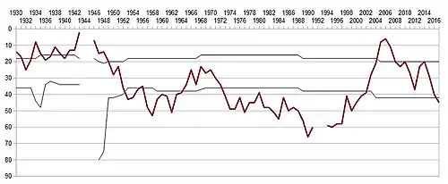 | 87 out of 92 years of professional football in Italy since 1929 | ||||