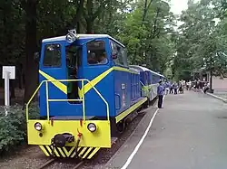 Railways in Ukraine use various gauge types. The broad gauge (1,520 mm), a legacy of Imperial Russian and Soviet times, dominates the landscape, and narrow-gauge railways (750 mm) also exist, but plans are being made to construct, restore or switch to more standard-gauge railways (1,435 mm) for better train connections with the rest of Europe.[19] About half of railways in Ukraine are electrified (some of which have been damaged during the ongoing Russo-Ukrainian War and temporarily switched to diesel trains).[20]