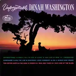 Unforgettable is the twelfth studio album LP record by blues, R&B and jazz singer Dinah Washington, released on the Mercury Records label, and reissued as a compilation album in 1991.[3] The record shows the singer mostly in a pop star role instead of her traditional jazz & blues style. Allmusic reviews the compilation album as saying: "This CD (which has the original LP program of 12 songs joined by six others) finds Washington singing brief (mostly under three-minute) versions of standards in hopes of gaining another hit.".[4] The single "Unforgettable", released in 1959, peaked at No. 10 on the Billboard 200 chart in 1961,[5] and Dinah's recording of the song was inducted into the Grammy Hall of Fame in 2001.[6]