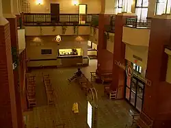 The meeting rooms on the tower's mezzanine level are in great demand for business meetings and social events such as retirement parties, class reunions, birthday parties, weddings, and receptions. Residents, as well as people with ties to Meridian, are becoming a permanent part of the Union Station complex by purchasing brick pavers inscribed with the names of loved ones, friends or themselves. The pavers are installed in the brick pathway of a small, landscaped green space linking the tower and east wing to the railroad museum.[5]