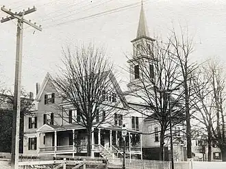 According to the United Baptist Church's website "[i]n 1943, the Rev. Lester Revoir, who became the pastor of the nearby Second Baptist Church on Clarke Street, in 1942, added to his responsibilities by becoming the pastor of the First Baptist Church. Three years later, in 1946, the First and Second Baptist Churches merged to form “The United Baptist Church, John Clarke Memorial", the present name of the church."[3] The church steeple was replaced with a smaller version after the 1938 Hurricane.[4]