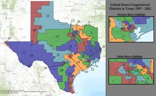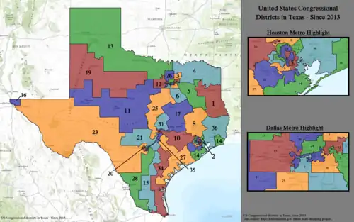 Below is a table of United States congressional district boundary maps for the State of Texas, presented chronologically.[6] All 10 redistricting events that took place in Texas in the decades between 1973 and 2013 are illustrated here.