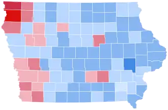 This is the last time Iowa was decided by a double-digit margin until 2024. It is also the last time that the counties of Adair, Appanoose, Butler, Calhoun, Cherokee, Clay, Dallas, Davis, Decatur, Dickinson, Guthrie, Hancock, Henry, Keokuk, Lucas, Madison, Monona, Monroe, Pocahontas, Ringgold, Taylor, Van Buren, Washington, Wayne, and Wright voted for the Democratic Party presidential nominee.