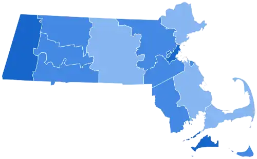 | Worcester | 192,142 | 56.41% | 144,094 | 42.30% | 4,400 | 1.29% | 48,048 | 14.11% | 340,636 |