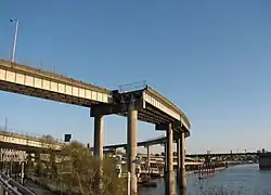 A now-unused ramp in Portland, Oregon at the western terminus of I-84 on the east bank of the Willamette River[1] formerly a connection to US99W/Steel Bridge