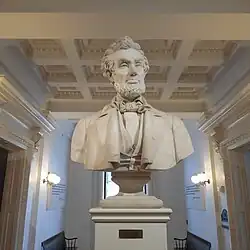 The dome is topped by a statue named Agriculture, a representation of Ceres, an ancient Roman goddess of agriculture. The original statue was carved by Vermont artist Larkin Goldsmith Mead, who also carved the large bust of Lincoln in the Hall of Inscriptions on the State House's ground floor. This statue was installed in 1858. When the first statue rotted out a replacement based on Mead's original was carved in 1938 by then 87-year-old Dwight Dwinell, Sergeant-at-Arms (in Vermont this official position is similar in nature to the White House Chief Usher). In April 2018 the second statue was removed. The current statue was carved by Chris Miller out of a laminated block of mahogany and was based on a one-quarter scale model created by Jerry Williams which was also based on the original 1858 statue.[5]