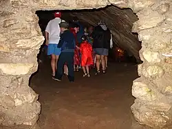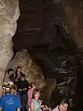 The Vorontsovskaya Cave (Воронцовская пещера) was the first cave to be surveyed. It may be accessed through a dozen entrances dotting the slopes of the Kudepsta River valley, at heights ranging from 419 to 720 meters above sea level. The Prometheus Grotto, with a length of over 120 meters, is developed as a tourist destination. The cave takes its name from the nearest settlement, Vorontsovka. It is known to contain bones of cave bears and early humans.[1]