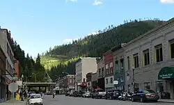 The 1997 film Dante's Peak was shot on location in Wallace, which was portrayed as the fictional town "Dante's Peak" in Washington state, with a large hill just southeast of the town digitally altered to look like a volcano.[54][55][56]