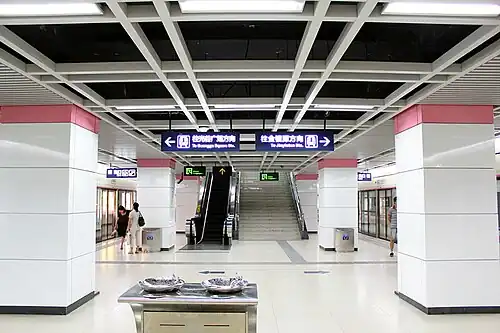 Wangjiadun East Station (Chinese: 王家墩东站) is an interchange station of Line 2 and Line 7 of Wuhan Metro. It entered revenue service on December 28, 2012. It is located in Jianghan District.[1]