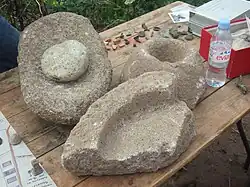 Since 1998, archaeological techniques such as field walking have led to the discovery of finds ranging in age from prehistoric flints and Bronze Age axe heads to Roman and late medieval finds. Featuring prominently amongst these finds were Roman artefacts including coins, brooches and a snake bracelet.[43] At the invitation of local historian Jim Balme, Time Team excavated in Warburton in September 2006. They were searching for a Roman fortlet that previous archaeological digs by South Trafford Archaeological Group (STAG) had indicated might be present. Though no evidence of a Roman fortlet was found, the discovery of strip lynchets indicates that there was a Romano-British farm in Warburton.[8][44] The presence of Roman finds was explained as rubbish, mixed in with manure to be spread on the crops.