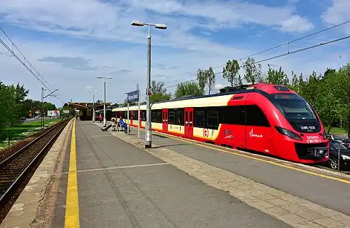 Warszawa Radość railway station is a railway station in the Wawer district of Warsaw, Poland. As of 2012, it is served by Koleje Mazowieckie, who run the KM7 services from Warszawa Zachodnia to Dęblin and by Szybka Kolej Miejska, who run the S1 services from Pruszków PKP to Otwock.