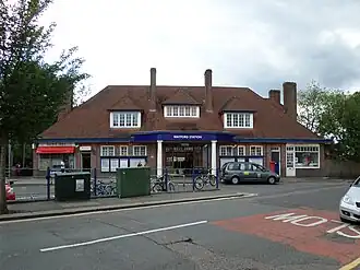 An opportunity arose in 1927 for another route to extend the line into the centre of Watford. Through a third party, the Metropolitan was able to purchase an existing building at 44 Watford High Street together with two-and-a-half acres of backlands, with the intention of creating a terminus in the town centre.[10] The possibility of a single-track extension in tunnel—either from the existing station or following a diversionary route around the station—was explored, but costs were extremely high and no Parliamentary powers were sought. The High Street building was leased out and was eventually disposed of by London Transport in 1936,[19] and today Watford station remains the terminus of the line, approximately one mile from the town centre.[10][20]