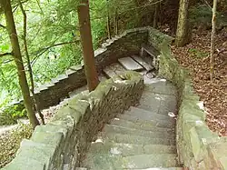 The park features three trails, open from mid-May to early November, by which one can climb or descend the gorge. The Southern Rim and Indian Trails run along the gorge's wooded rim, while the Gorge Trail is closest to the stream and runs over, under and along the park's 19 waterfalls by way of stone bridges and more than 800 stone steps. The trails connect to the Finger Lakes Trail, an 800-mile (1,300 km) system of trails within New York state.[3]