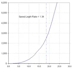 These values, 1.34, 2.5 and very easy 6, are often used in the hull speed rule of thumb used to compare potential speeds of displacement hulls, and this relationship is also fundamental to the Froude number, used in the comparison of different scales of watercraft.